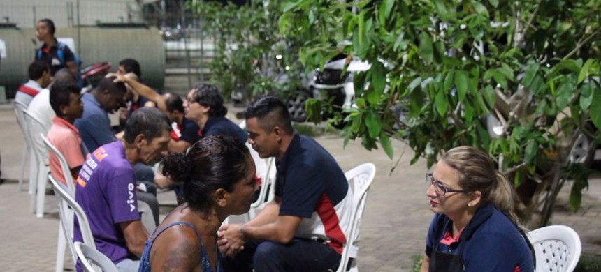 Antes de sair pelas ruas – levando amor ao próximo em 14 pontos de Manaus -, todas as terças-feiras, os voluntários participam da reunião dos evangelistas, na Igreja, onde buscam a presença do Espírito Santo para que possam estar capacitados a fazer esse trabalho voluntário.
